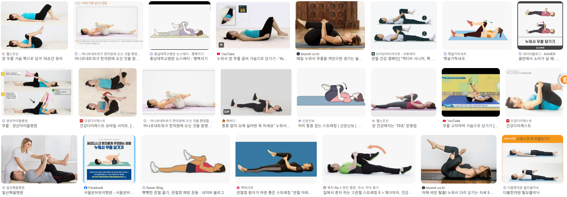 - 방법: 등을 대고 누워 한쪽 무릎씩 가슴 쪽으로 당겨줍니다.